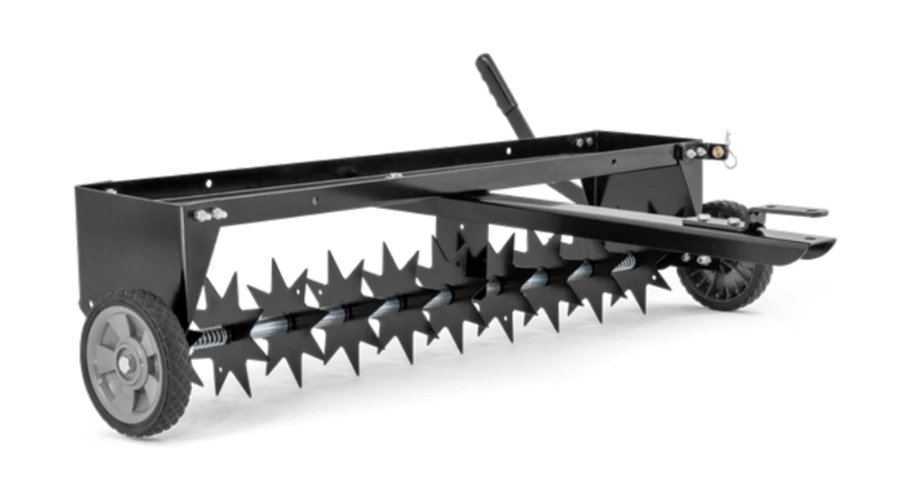 A tüskék kilyukasztják a talajt a levegő és a műtrágya számára. 102 cm munkaszélesség.