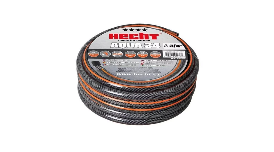 A Hecht Aqua csavarodásmentes locsolótömlő egy szilárd, erősített, háromrétegű szürke-narancssárga tömlő. A puha PVC-ből készült kertitömlő vagy egyszerűen csak slag, sokoldalú kertészeti öntözési folyamatokhoz használható, de nagy segítség a ház körüli tisztításnál vagy akár az építkezéseken is. Használatával a növényeket a kert túlnyomó részében könnyedén tudja öntözni, de autó, motor, kerékpár vagy a kertibútor mosásánál is nagyon hasznos. Ajánlatunkban megtalálhatóak a különböző méretű Hecht Aqua tömlők. A Hecht Aqua tömlőt igen nagy ellenállás jellemzi a töréssel, szakadással és a víznyomással szemben. A nagyobb súly és az anyagösszetételének köszönhetően jobban ellenáll az időjárási viszonyoknak és használata egész évben ajánlott. A megerősített tömlő 3 rétegből áll. A belső és a külső rétegek UV sugárzásnak ellenálló PVC-ből készülnek, aminek köszönhetően a tömlő belseje védett az algásodás ellen. A középső réteg erős, fonott szintetikus szálakból készült. A kadmium mentes kertitömlő, így alkalmas a növényekkel, állatokkal és az emberekkel való érintkezésre.