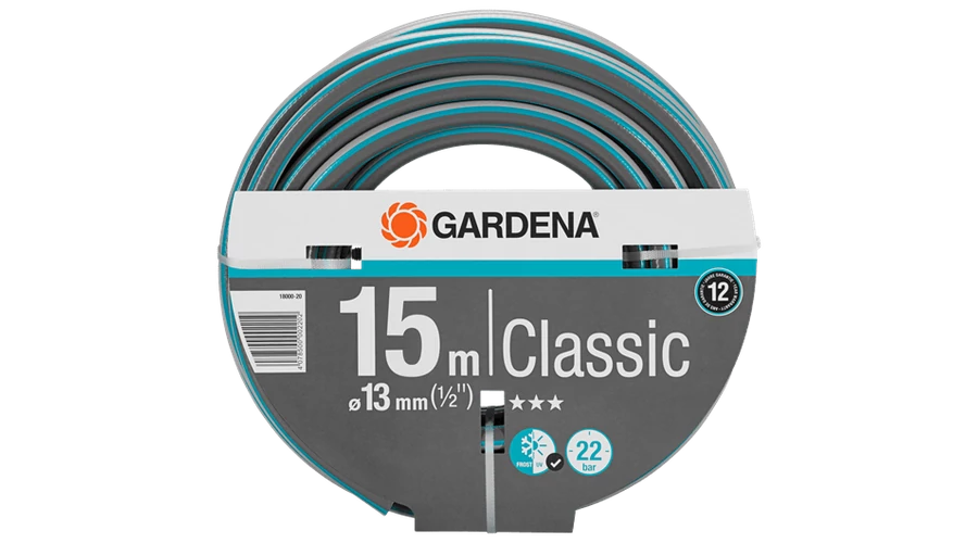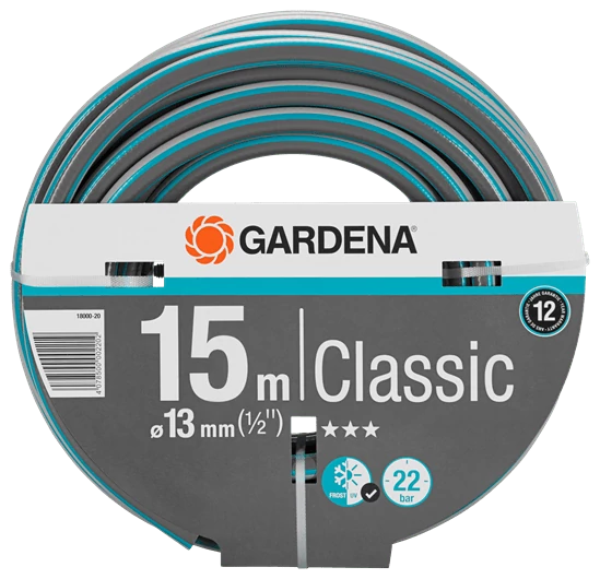 A nyomásálló GARDENA Classic tömlő használat közben megtartja alakját minőségi alapanyagának köszönhetően, mely nem tartalmaz káros lágyítókat (ftalátokat) és nehézfémeket és természetesen UV ellenálló. Szükség esetén az Original GARDENA System csatlakozóelemeihez és öntöző eszközeihez kitűnően használható. Ez nyújtja a legjobb előfeltételeket az egyszerű és sokoldalú felhasználáshoz a kertben. Repesztő nyomás 22 bar. A GARDENA rendeltetésszerű használat esetén 12 éves szavatosságot ad rá.