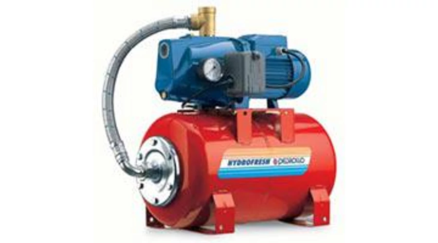 24 literes gumimembrános tartállyal egybeépített, műanyag járókerékkel szerelt, öntvényházas,